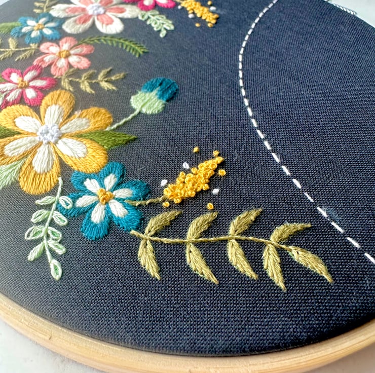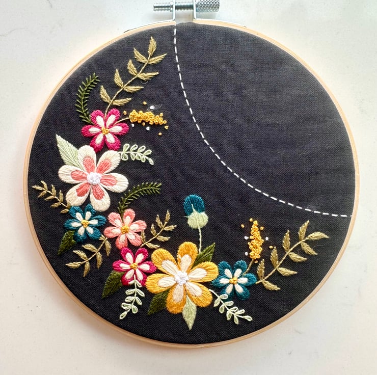 LeaIf you are a big fan of satin stitch, this kit is for you! Whether you are a complete beginner or have past experience in hand embroidery, this kit will walk you through 6 common stitches of hand embroidery, whilst you create a beautiful 6" embroidery hoop wall hanging.