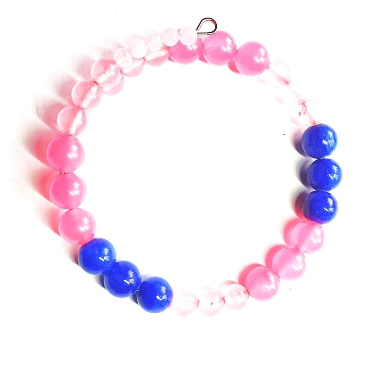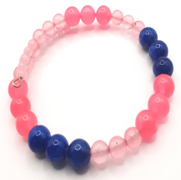 Indulge in the mesmerizing allure of gemstones with our handcrafted creation! Our Paradise Pink Jade beads evoke the serenity of a tropical paradise, infusing your jewellery with a blissful aura. Complemented by the delicate charm of Baby Pink Jade beads, the captivating midnight blue fossil beads, are reminiscent of a starlit sky, each piece radiates elegance and grace. adding depth and sophistication to the designs. Crafted with passion, these gemstones are strung on durable memory wire