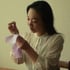 The doll's skirt acts like a bag, into which you place the lavender. A draw-string around her waist pulls tight, to secure it.