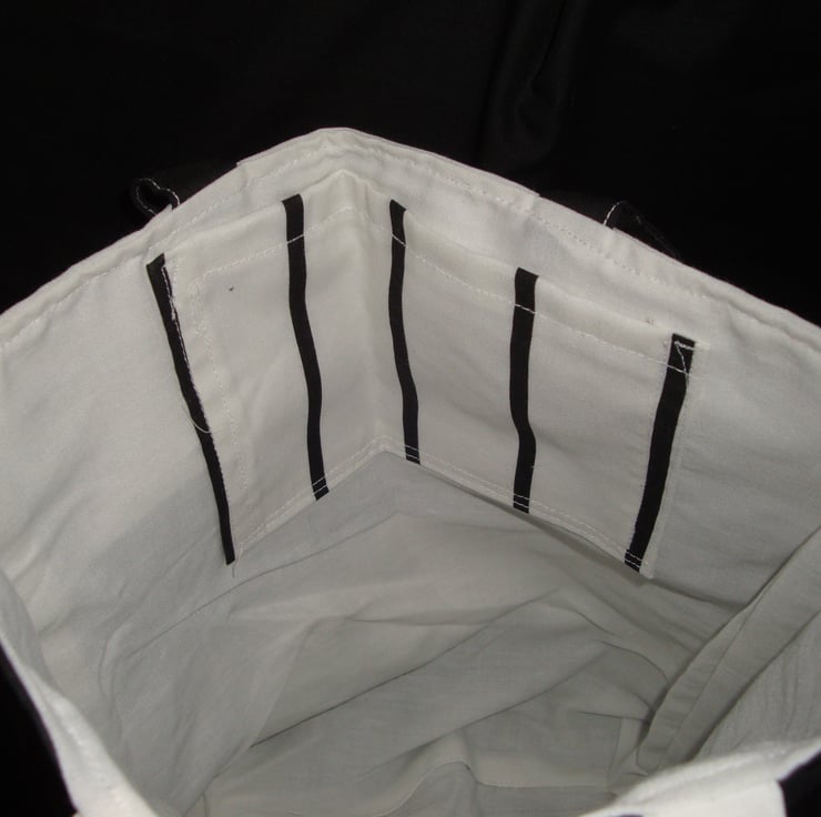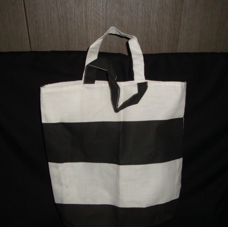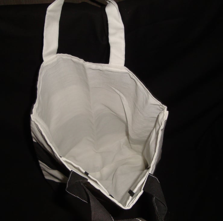 This black and cream bag is ideal when you don't need to take a large bag, made from recycled cotton fabric and has two carry handles, and a small internal pocket.