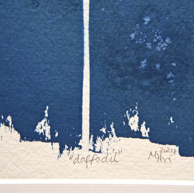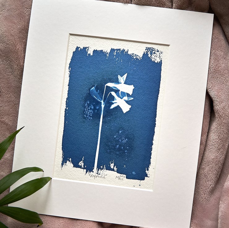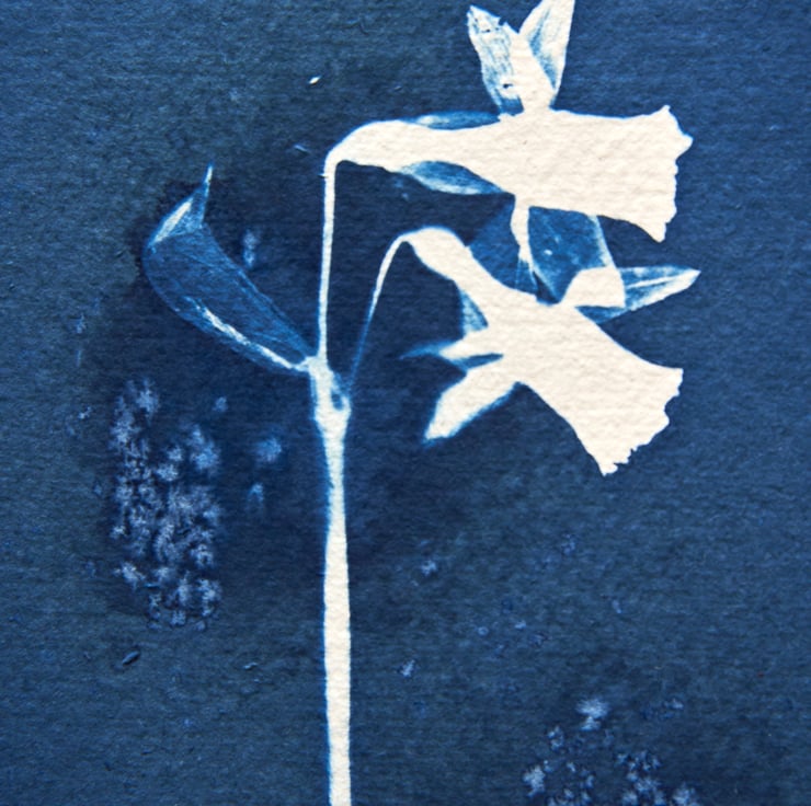 This is a beautiful cyanotype print capturing the details of little daffodils.