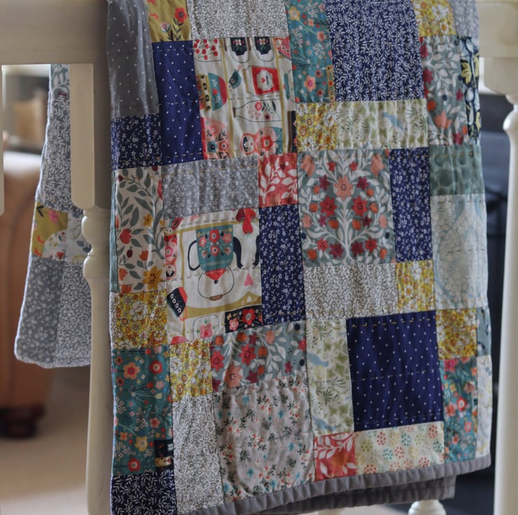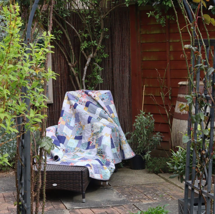 This quilt uses a traditional 'nine patch' block. The 'nine patch' is a classic quilting pattern, which has been adapted in different ways over the years. This adaptation is often called the 'disappearing nine patch' because of the way the starting nine patch becomes disguised and hidden as you play around with the blocks.