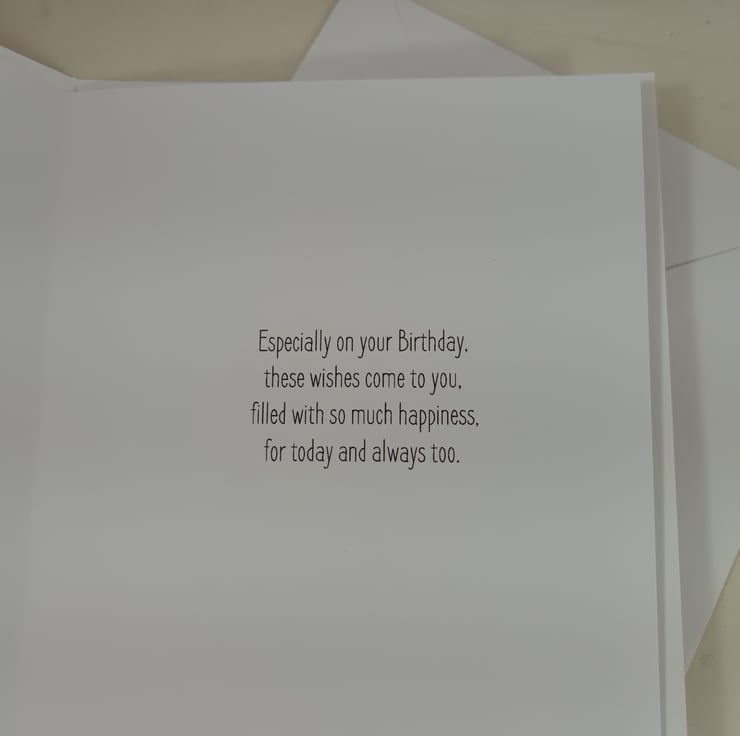 The card measures approximately 17.5cm x 12.5 cm (7 inches x 5 inches) and comes with a white envelope, in a sealed wrapper.
