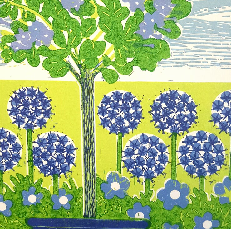 A limited edition original lino cut print of some of the lovely flowers that bloom in early Summer