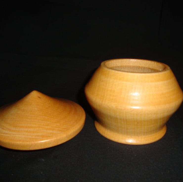 Hand turn on lathe from Ash. finished with a high quality wax. ideal trinket pot.