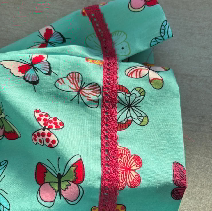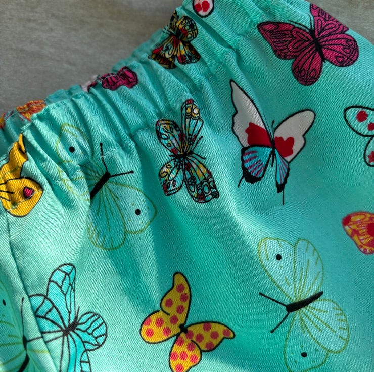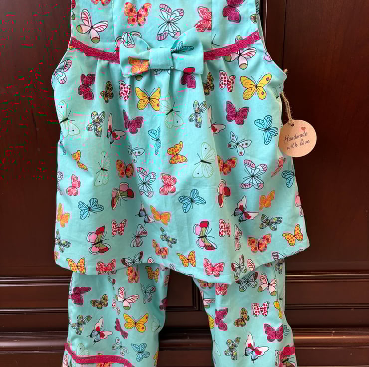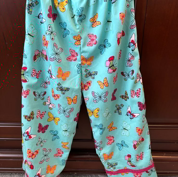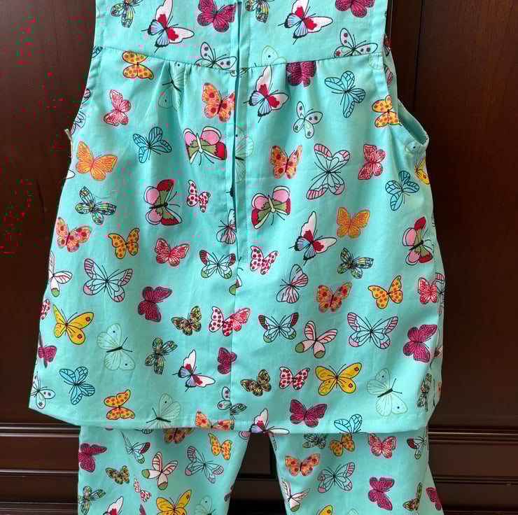 This beautiful butterfly print is so well suited to this outfit. Loose trousers and sleeveless top. A perfect combination for Summer and holidays.