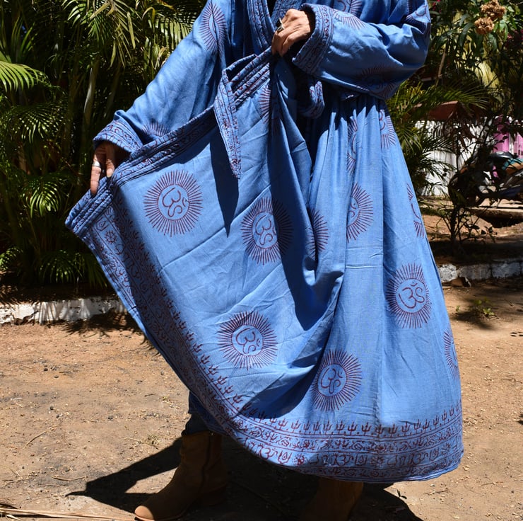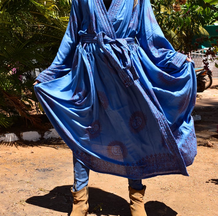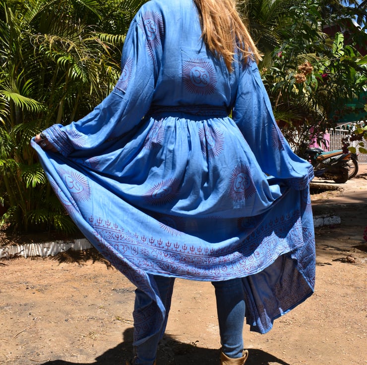 Beautiful Hindu Print Long Sleeve Kimono Dress Festival Clothing, Travel Dresses /Bohemian Robe / Kaftan, Indian Hindu Gods /Om Print/Shiva Print/Krishna Print