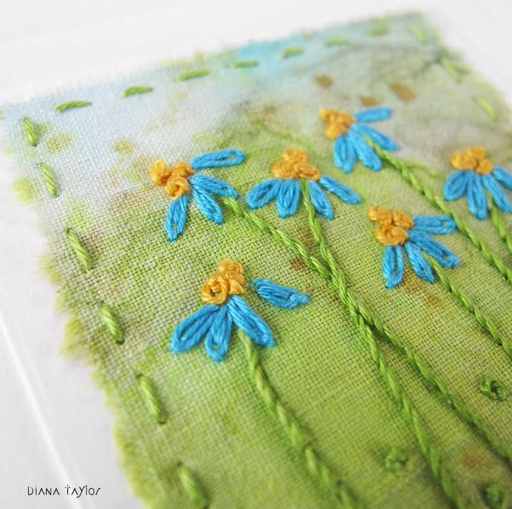 Inspiration for my embroideries often comes from my garden and my daily walks in the beautiful New Forest. I sketch and take photos and these are often used as a basis for my inked fabric backgrounds and embroidery designs.