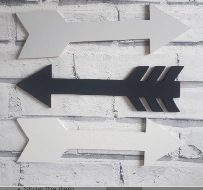 We make these wooden arrows from 9mm mdf and each arrow measures 28 cm by 8 cm and can be painted in any choice of colours to match room decor.