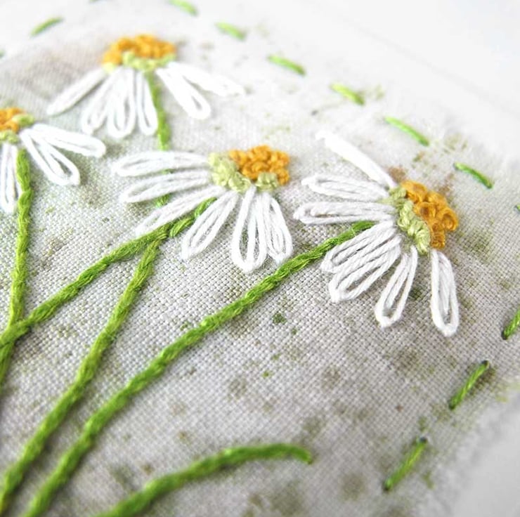 Inspiration for my embroideries often comes from my garden and my daily walks in the beautiful New Forest. I sketch and take photos and these are often used as a basis for my inked fabric backgrounds and embroidery designs.