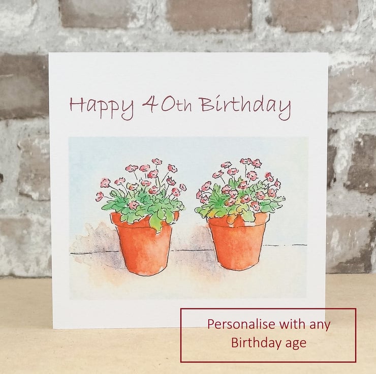 This Flower Pot Birthday card can be printed with ANY AGE from 1 to 110 as seen in photograph above, just put age required in options when you order.