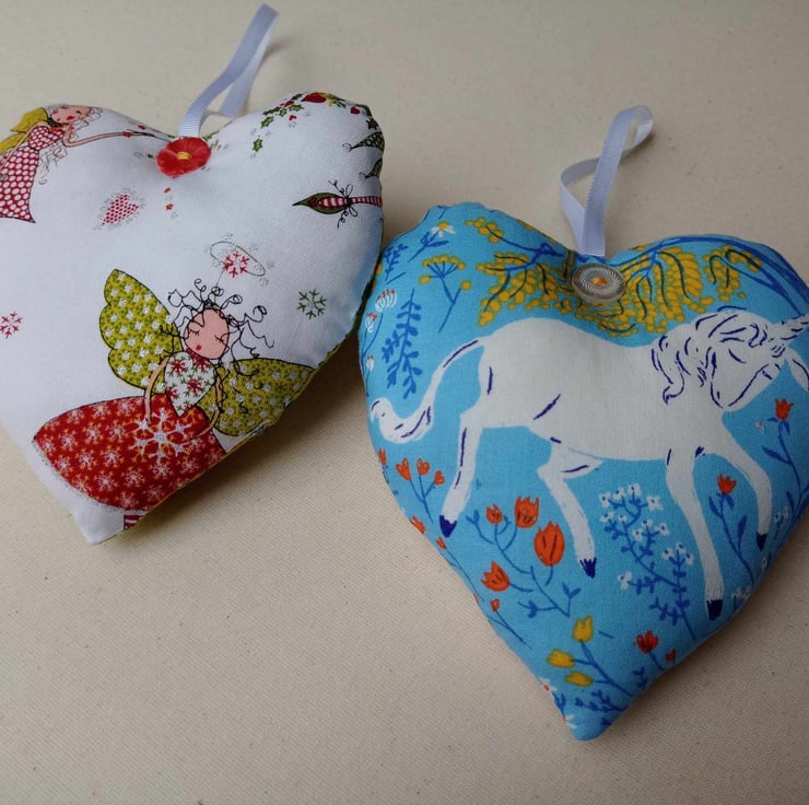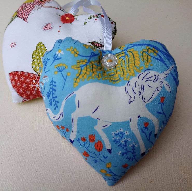 Gorgeous sparkly fairy heart, reversing to a beautiful unicorn - what more can you ask for? Sold singly, or as a pair, my stuffed hanging fabric hearts are perfect for decorating a child's bedroom or a thoughtful gift for anyone who believes in fairies and unicorns.