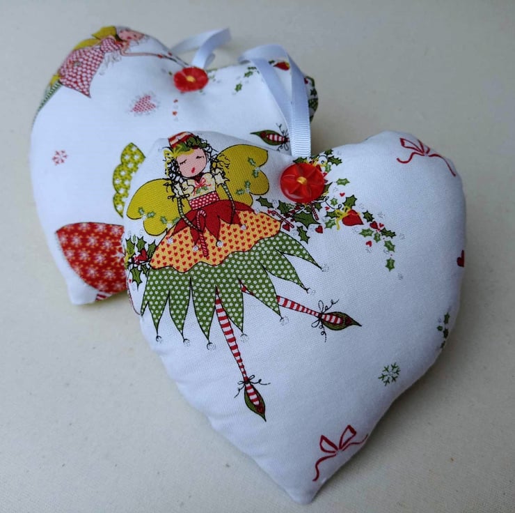The hearts are also eco-friendly - as I use offcuts from my Christmas Stockings, Santa Sacks and Christmas Aprons that would otherwise go to waste. I also use recycled buttons from my collection.