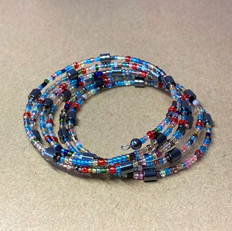 Multicolor Seed Beads - Hematite Semi Precious Stone Beads - Memory Wire Bangle