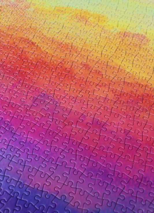 An early morning coffee outside inspired us to create a sunrise puzzle. Capturing the glorious colours and how the light catches the mist.