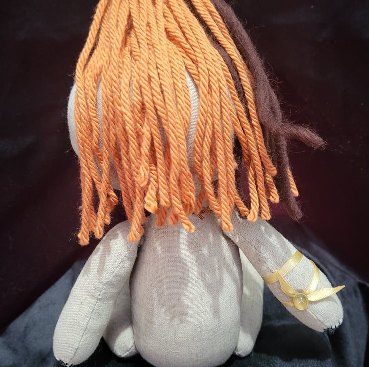 My art dolls are a type of rag doll, so usually have knitting yarn for hair & buttons for eyes.