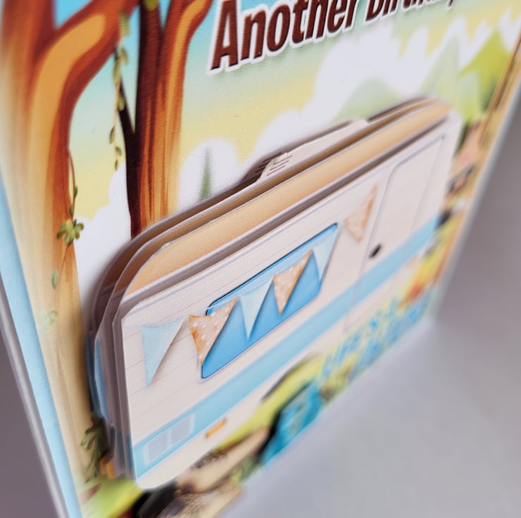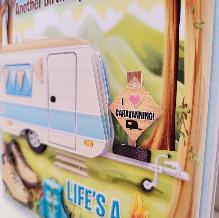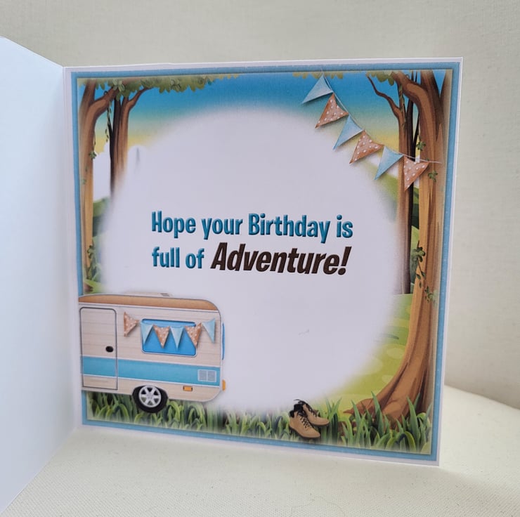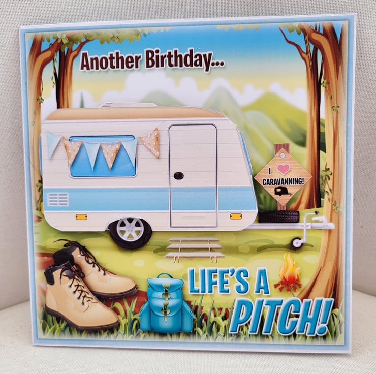 What a fabulous birthday card for the caravan enthusiast in your life. This card has been printed onto good quality card and each layer has been hand cut by myself and layered on with foam tape to create a 3d effect. The card measures approx 7 x 7 inches. Inside the card reads "Hope your birthday is full of adventure "