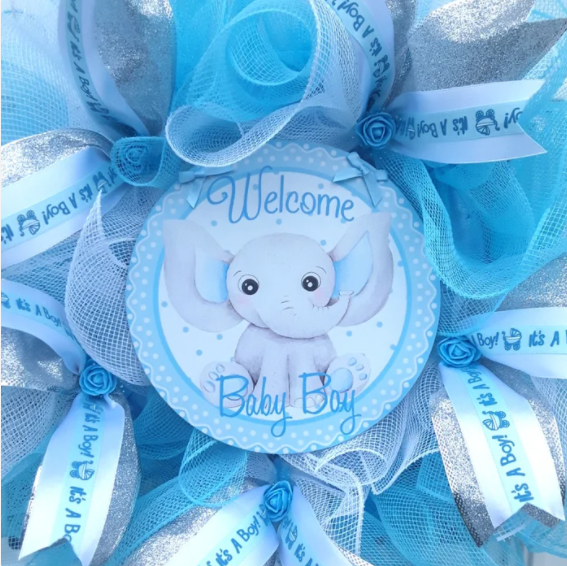 Handmade New Baby Boy Announcement Wreath,Nursery Wall Decor, Deco Mesh Baby Welcome Wreath