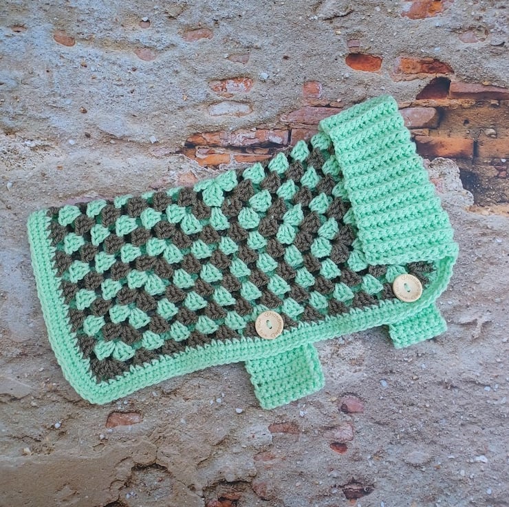 If your pet doesn't like over hear wearing jumpers let's try this chunky cozy jacket