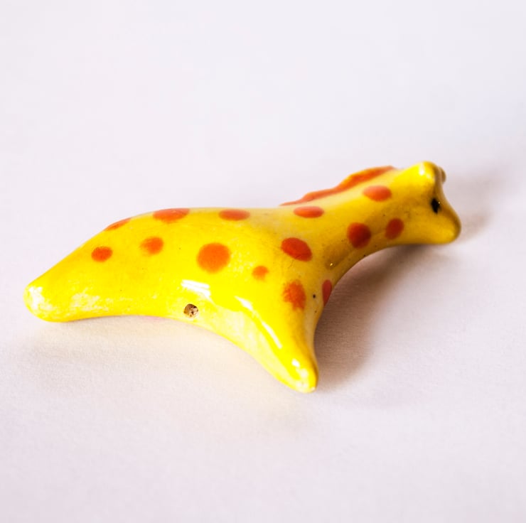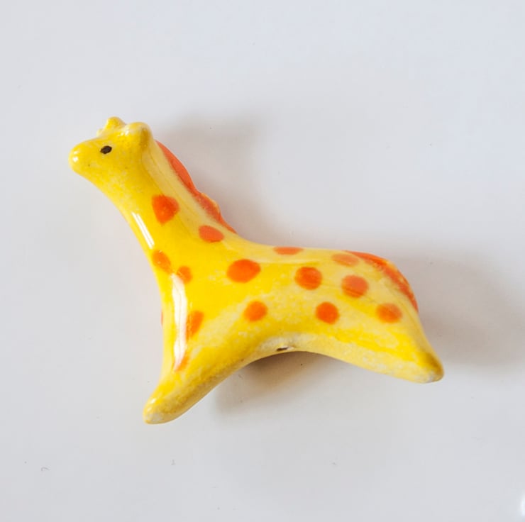 The piece is waterproof as it has been glazed and vitrified in the kiln. A suitable component for use as a pendant, charm, or brooch. Or perhaps it would be an office mascot gift for Giraffe enthusiasts!