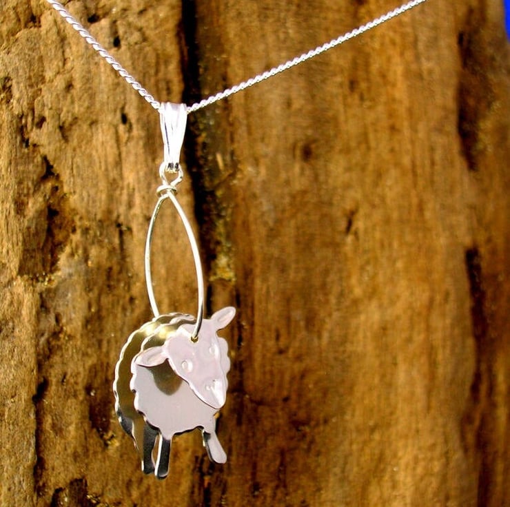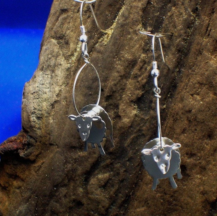 These unique sterling silver sheep earrings, designed and hand made by UK Designer Jeweller Philip Tulley, are each made in three pieces, separated by silver beads to give a 3D appearance and a sense of movement. They are light and easy to wear. The earrings are approx.4.75cm. (1.75") long, including the silver hooks.