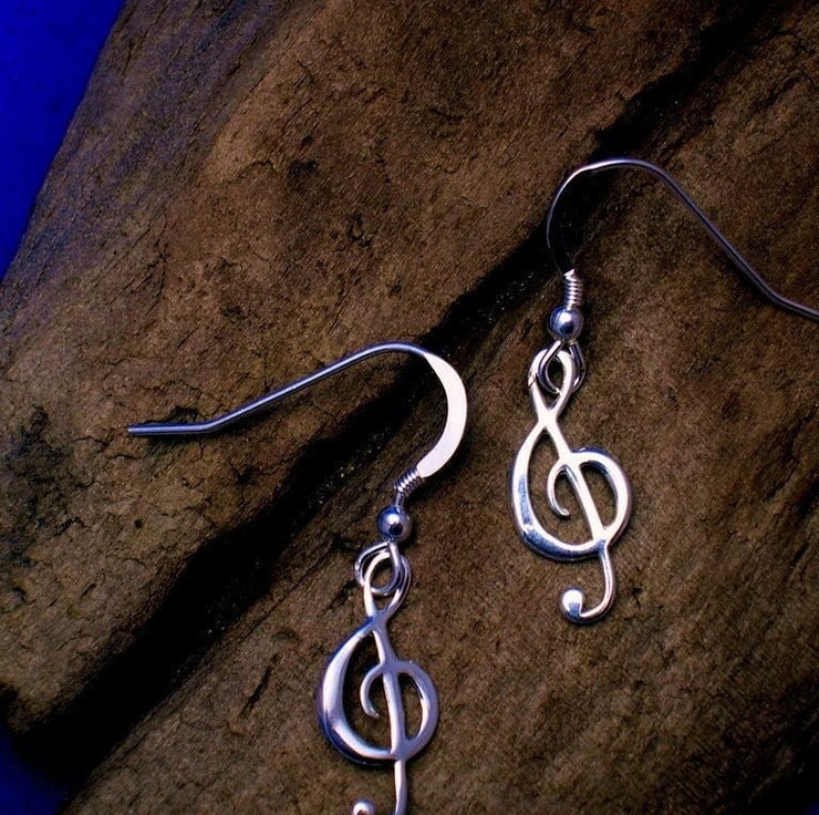 These beautiful sterling silver treble clef earrings are handmade, in England, by Philip Tulley and would make a perfect present for any music lover.