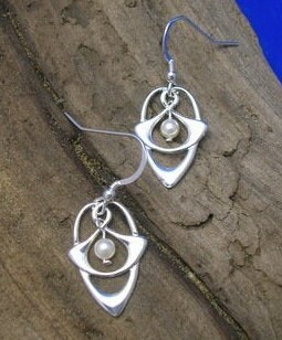 This lovely solid silver and pearl pendant draws inspiration from the sweeping forms of the Art Nouveau period and the strapwork elements of Celtic design. It is hand made in solid sterling silver by Philip Tulley and features a single premium crystal faux pearl.