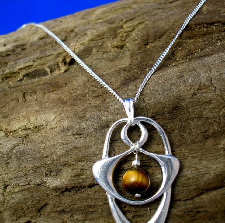 The pendant is also available with an amethyst, turquoise, blue agate. black onyx or tiger eye stone.