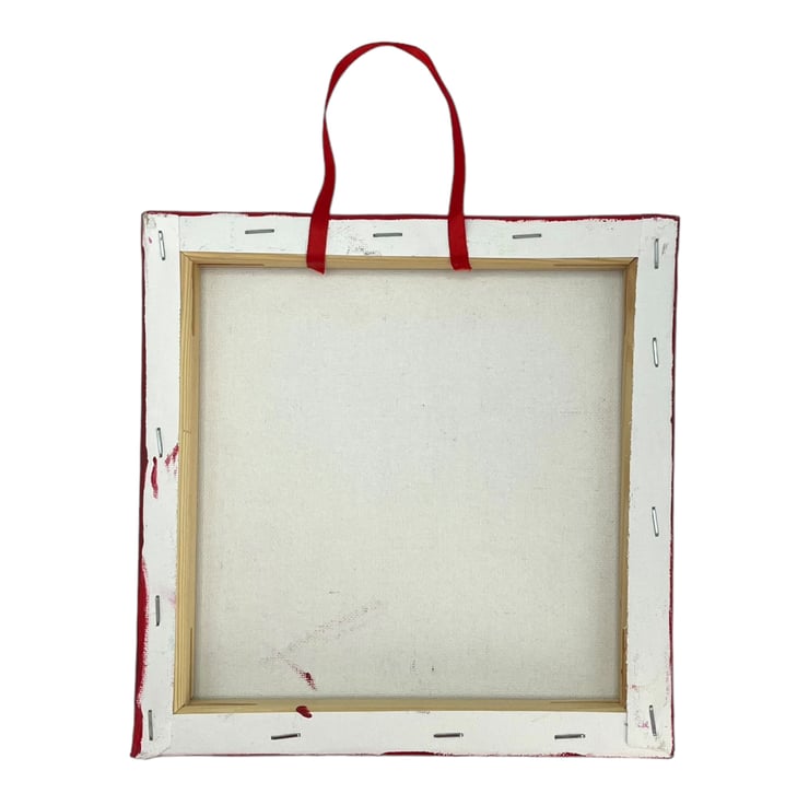 Choose between bright or dark red background This canvas has a red ribbon attached so that it is ready to hang. Size :20cm x 20cm