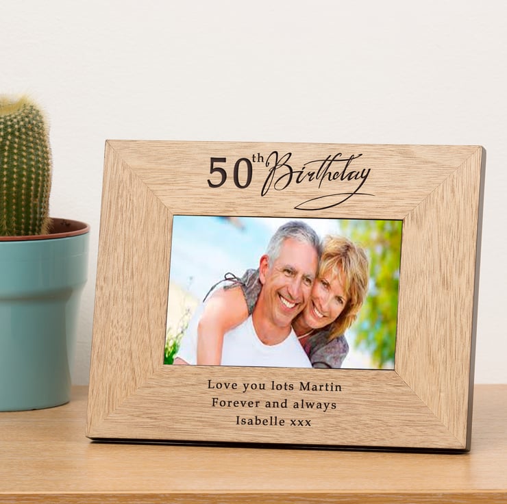 A stylish personalised oak finish photo frame.