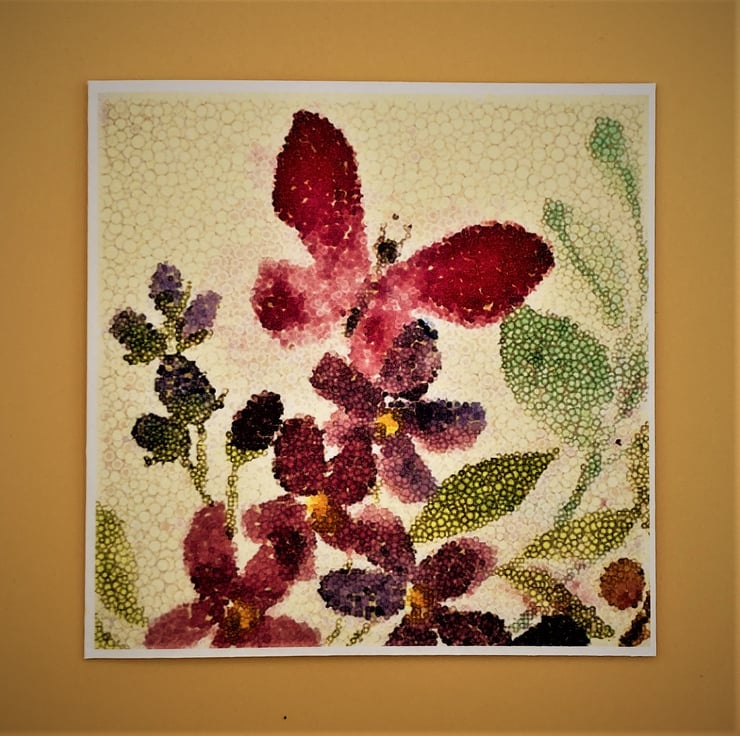 I love cards and keep favorite ones sent to me over the years. A handcrafted card can say so much and you can never go wrong with flowers as a subject - I really enjoy painting florals and adding the butterflies makes a change. I also like playing around with the subsequent images to achieve different effects, which I then use to make unusual and original cards. I like to think that someone might also keep one of my cards as a reminder of a special day - they look great framed.