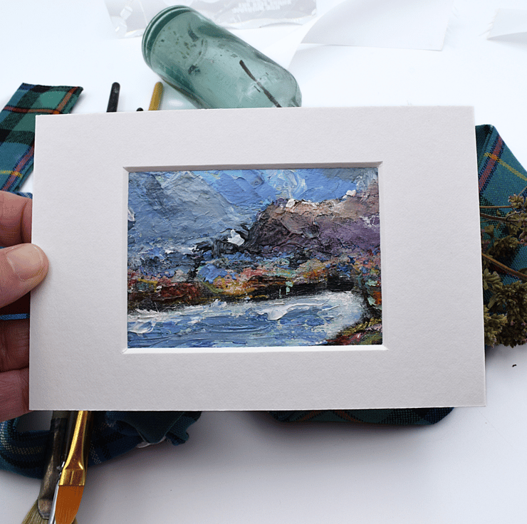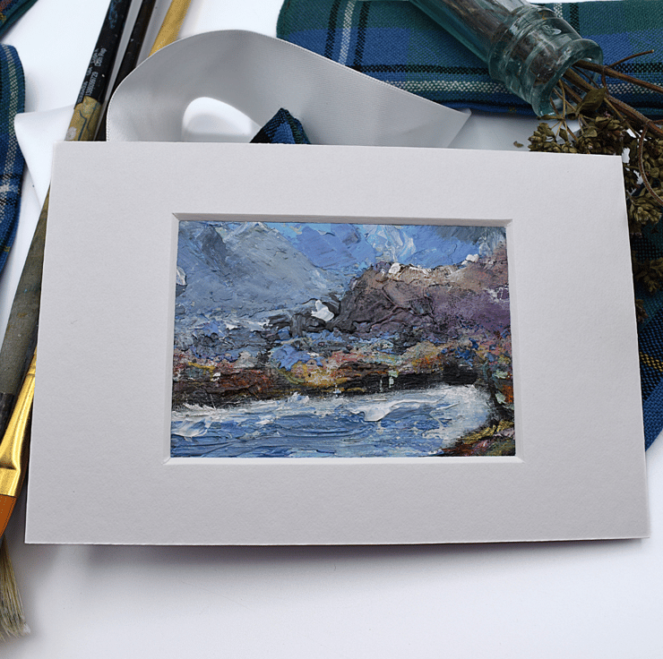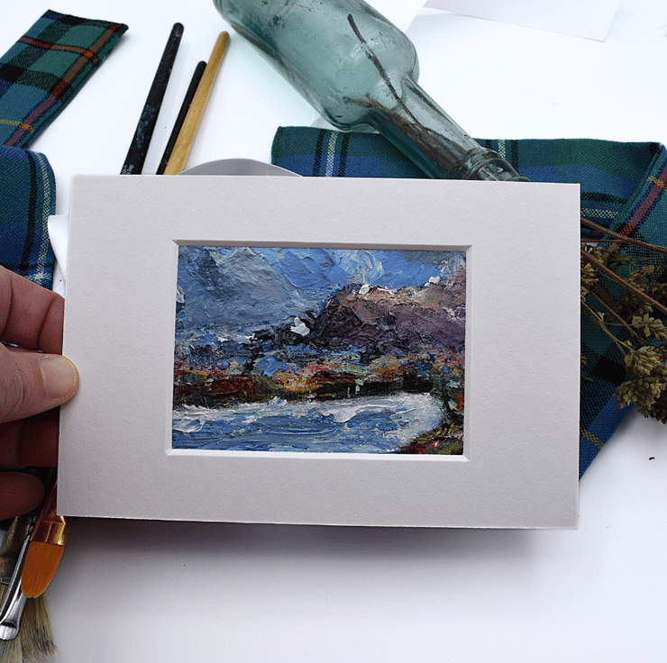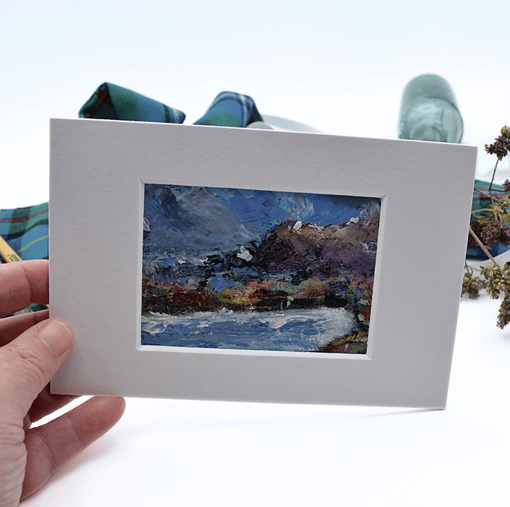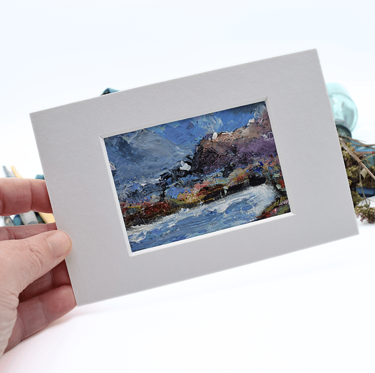 - This is an original, one-off painting at 3.5 x 2.5 inches. The total size including the mount is, 6 x 4 inches (15 x 10 cms).
