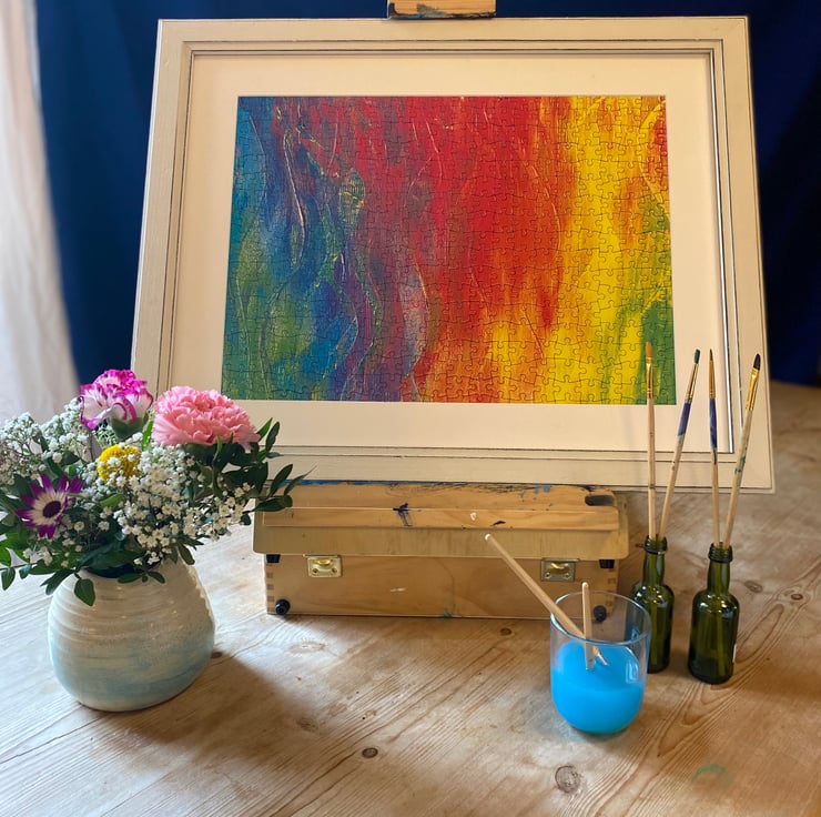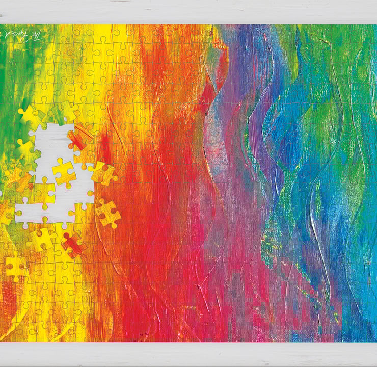 Brighten up your jigsaw puzzle collection with this energetic gradient puzzle. With a canvas texture and strong brush stokes you'll feel like you painted this beautiful puzzle yourself.