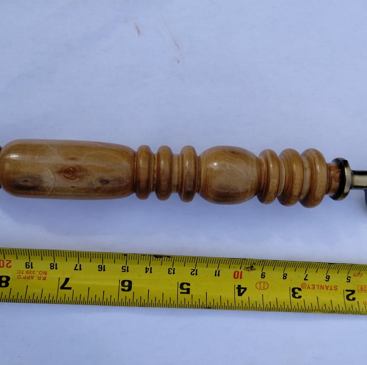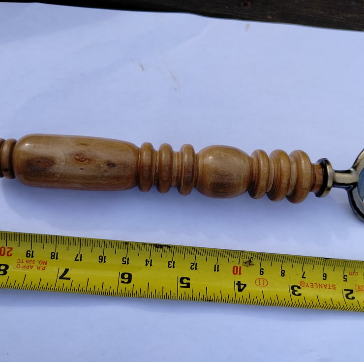 Turned wooden bottle opener with Steel end. When I first got a lathe I enjoyed turning some wood from my garden...I think this is apple or maybe pear, it has a lovely grain and has been lacquered then finished with wax, with the steel bottle opener epoxy resin glued in.... A few different types to choose from, some using plywood, all with different patterns and lengths.