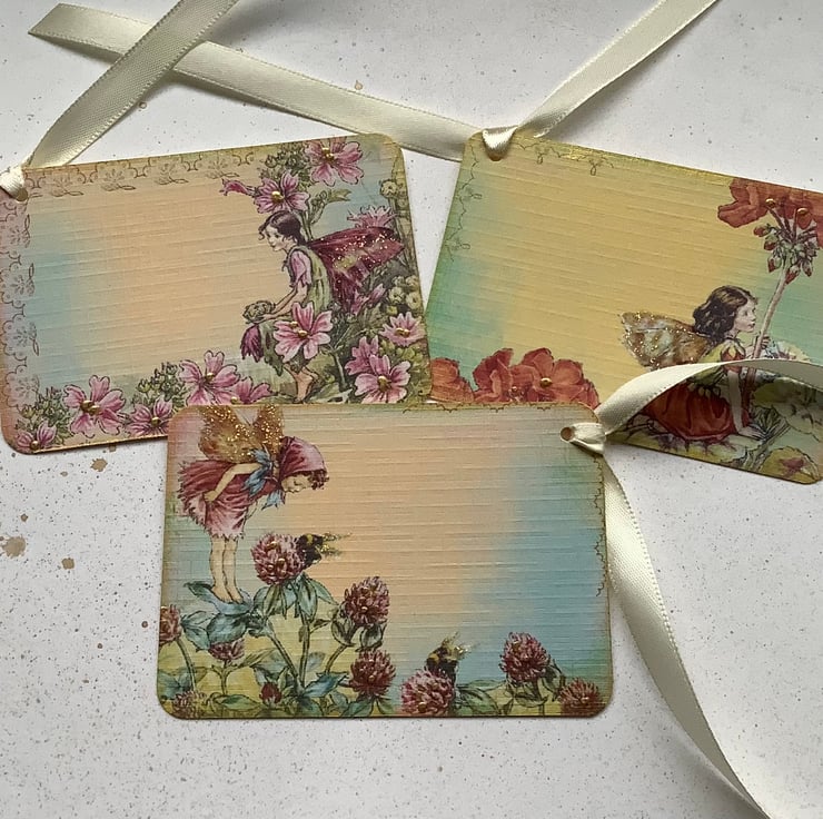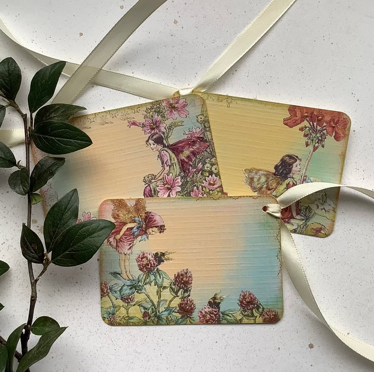 You will receive three tags( as pictured )..... 1 x Mallow Fairy,1 x Geranium Fairy, 1 x Clover Fairy.