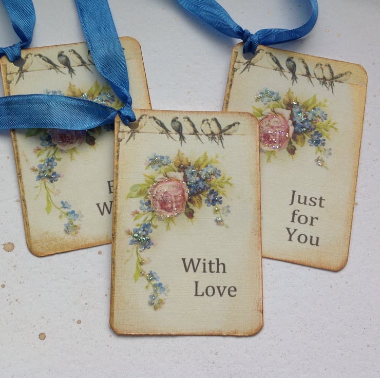 You will receive three, tags as pictured , each with a different sentiment. 1 x Just for You , 1 x With Love, 1 x Best Wishes.