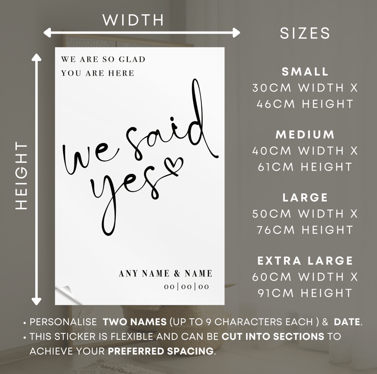 Elevate your wedding décor with our personalised sticker, designed to add a touch of charm and elegance to your DIY signs or mirrors! Available in a range of sizes and colours, this sticker allows you to customise your wedding signage to match your unique style and theme perfectly.