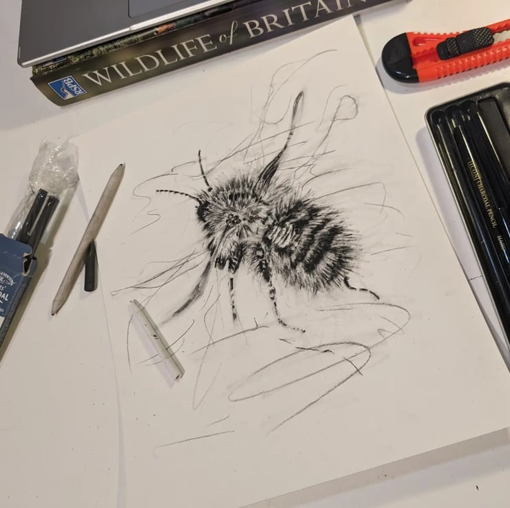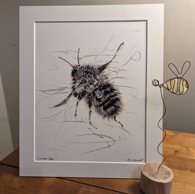 An open edition signed high quality print of an original charcoal drawing of a Carder Bee. Each print is professionally mounted and cellophane wrapped.
