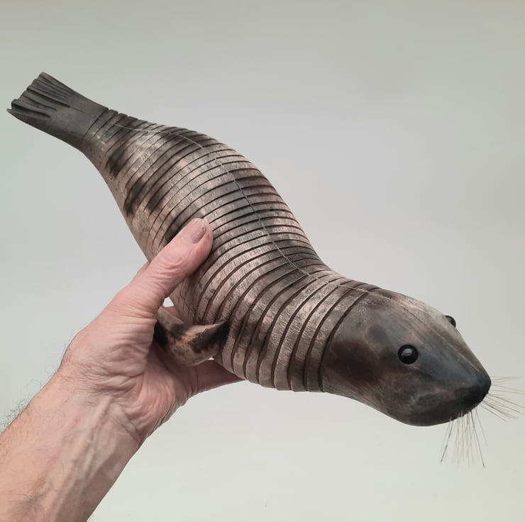 45 cms nose to tail articulating seal in beech. Postage by Special delivery.