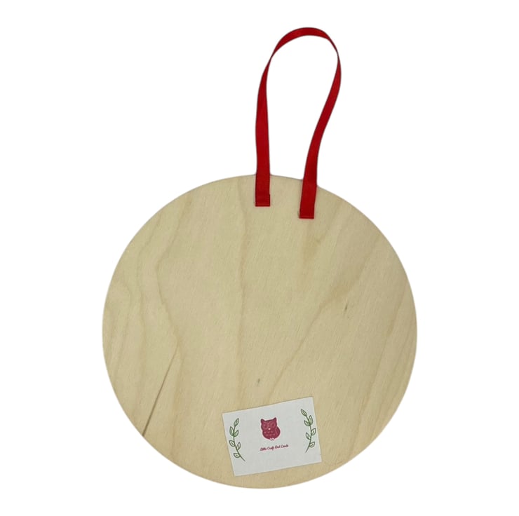 This art board has an orange ribbon so that it is ready to hang. Size: 15cm