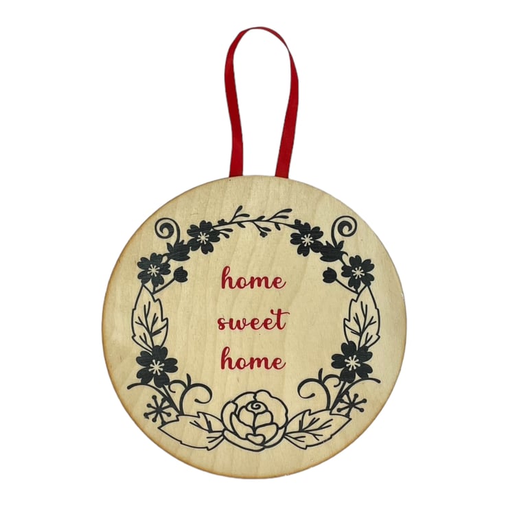 This charming wooden ornament featuring the words "home sweet home" in an intricate floral wreath is the perfect addition to any living space. Crafted from high-quality wood, this wall art exudes warmth and coziness, making it a wonderful accent piece for your home. The elegant script font adds a touch of sophistication, while the natural wood finish brings a rustic feel to any room.