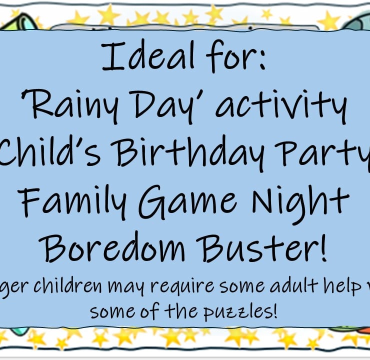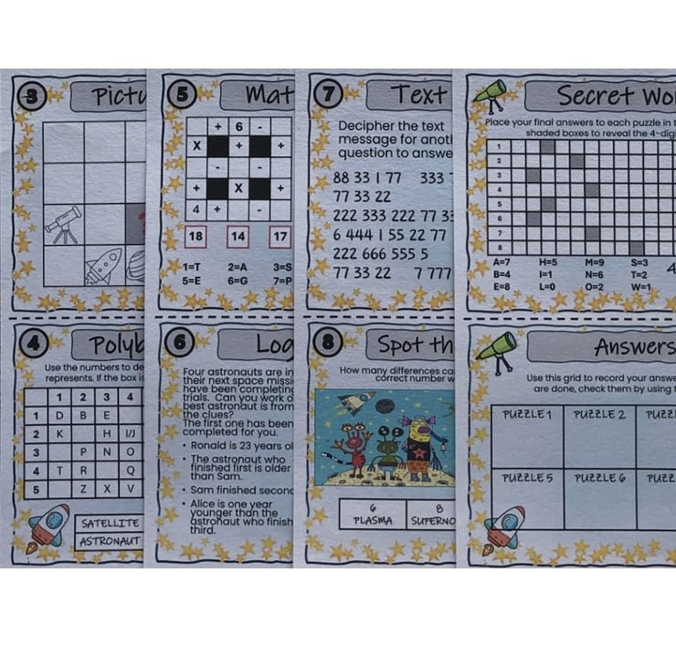 Make a celebration extra special by playing these fun team building puzzles / games. This printable space themed Secret Mission has eight puzzles that kids from 8 upwards will find entertaining and challenging.