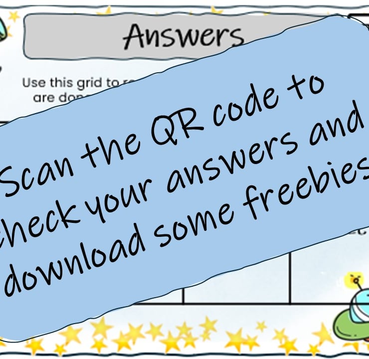 The code (and answers) can be checked by scanning the QR code on the answer sheet. Once the QR has been scanned you will also have access to a free downloadable certificate and 12 space themed colouring pages.