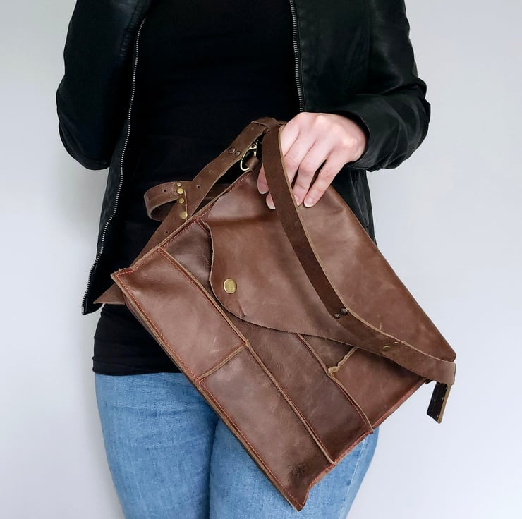Soft leather crossbody bag, crafted from soft leather scraps sourced from a sofa factory.