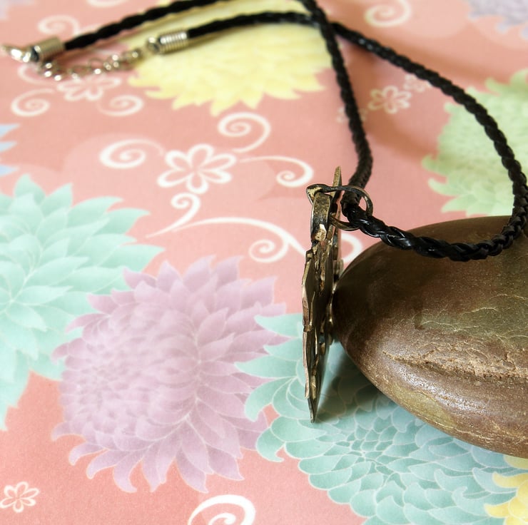 A lovely and very eye-catching hand-crafted silver pendant made by myself from up-cycled sterling silver. The silver has been textured and darkened, as shown in the pics.