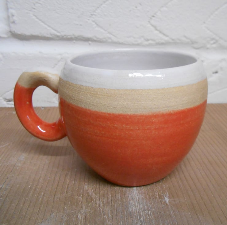 Wheel thrown durable Stoneware Ceramic Huggable mug.