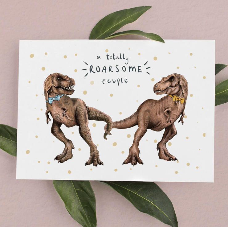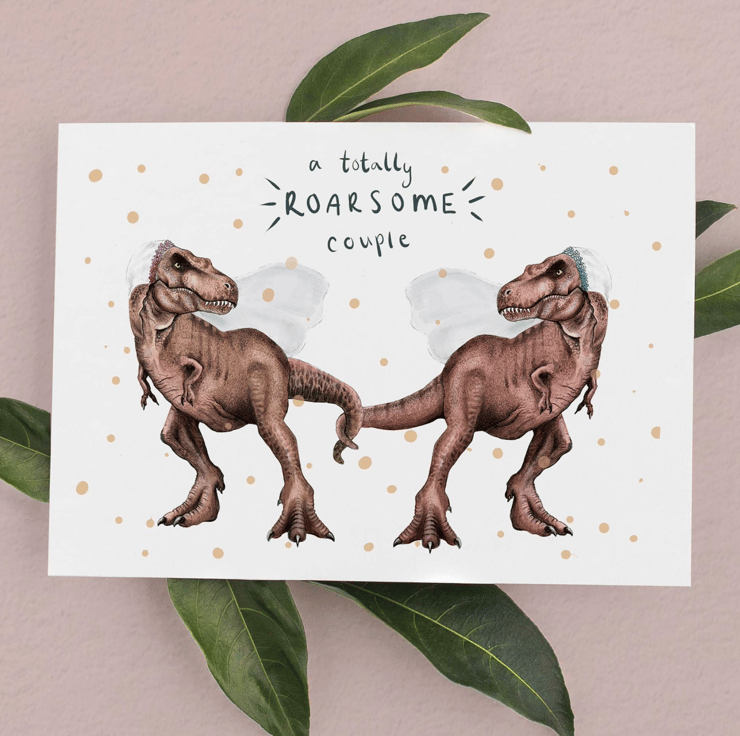 A T-Rex Dinosaur card for the most roarsome newlywed couples.