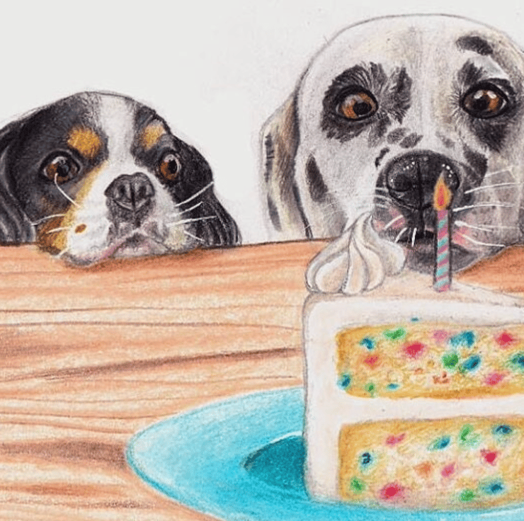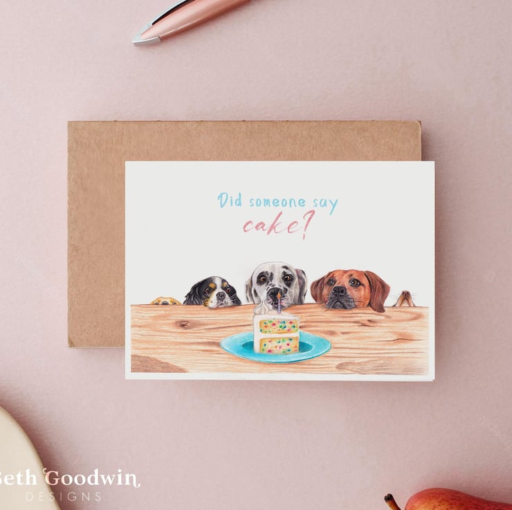 This doggy design was hand drawn in coloured pencils giving it an extra special level of detail. This bright and colourful Dog Birthday card is perfect for Dog lovers.