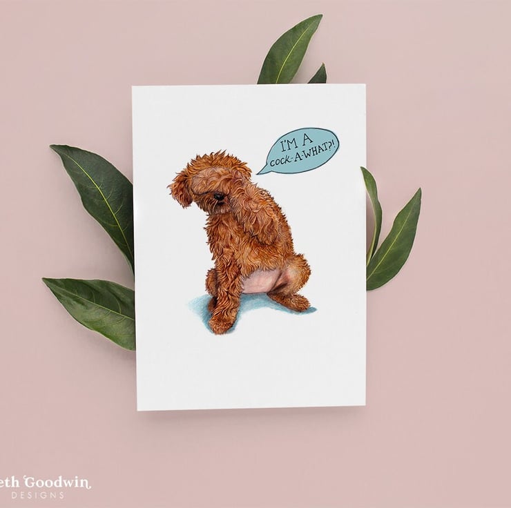 A Cockapoo card featuring an Apricot Cockapoo. A funny dog card perfect for Cockapoo owners and dog lovers.