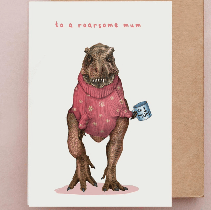 A sweet and funny Dinosaur Mother's Day card. Perfect for quirky t-rex loving mums!